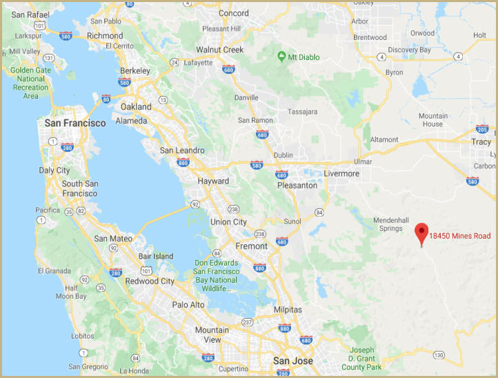 Los Mochos is located about 18 miles south of Livermore in Alameda County on Mines Road at mile marker 14.95. .
